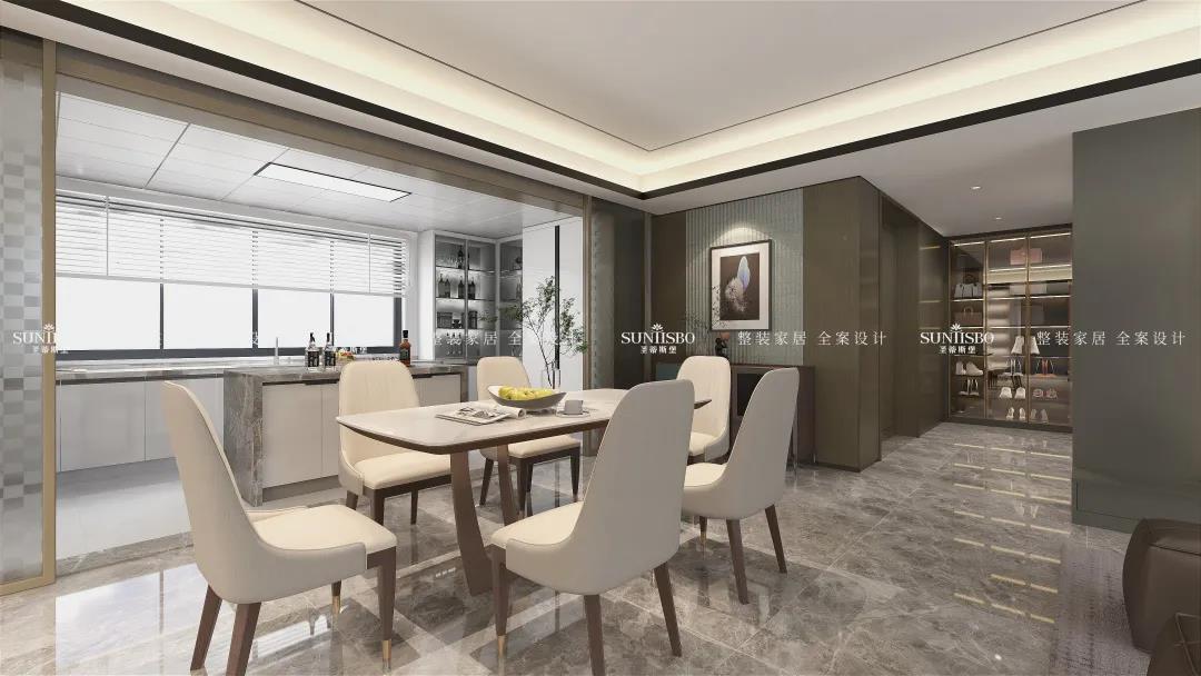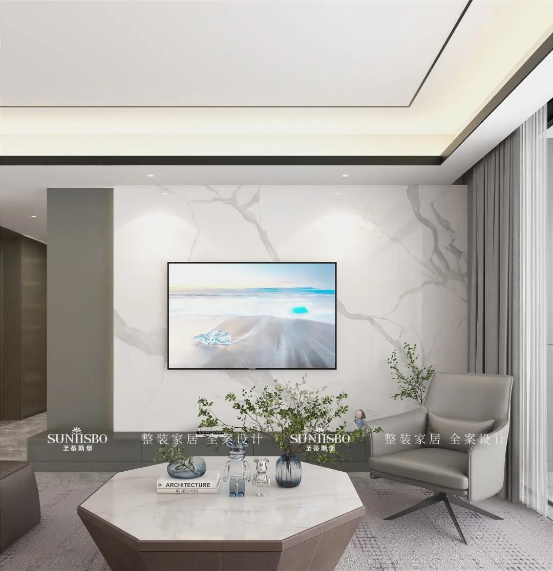 客廳根據(jù)業(yè)主太太的喜好而設(shè)計(jì),茶幾采用純天然爵士白大理石,自然天成的石材紋理,通過留白的藝術(shù)表現(xiàn)手法,營造出自然靈動(dòng)、沉穩(wěn)時(shí)尚的意境。從細(xì)節(jié)處彰顯對生活的態(tài)度與追求,打造高品位的現(xiàn)代家居。